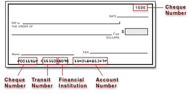 In Canada and the United States, your account information would be displayed as shown on the sample checks below: